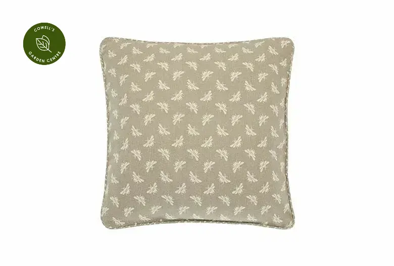 Square cushion in our 100% cotton bumblebee print with piped edges. Zip closure for easy removal of pad. By purchasing this product you are helping fund the work of the Bumblebee Conservation Trust.