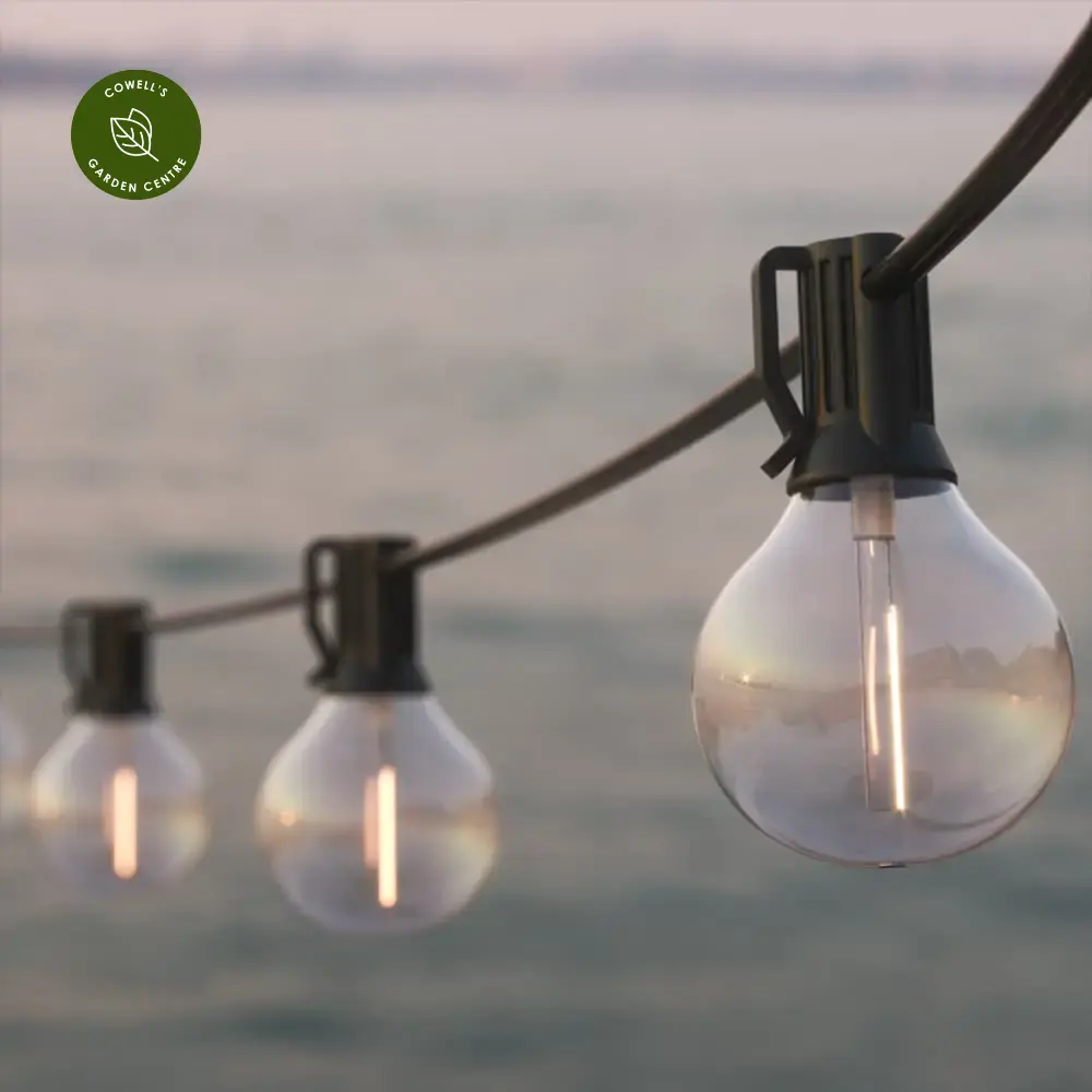 Add festoon lighting quickly and easily to any outdoor space without the need for mains power with this stunning vintage effect bulb string. The warm white, long-lasting G40 LED bulbs can easily be replaced in the future.