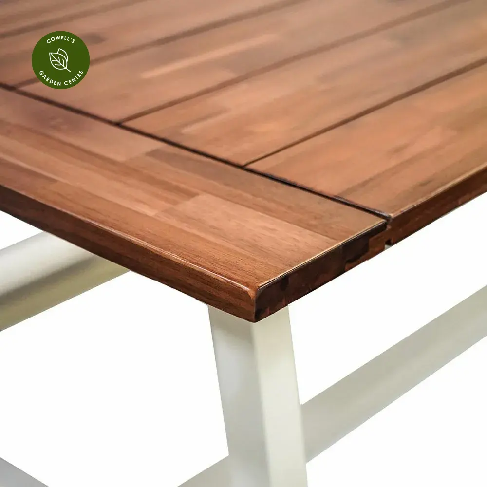 Our striking yet rustic Broadway 5 piece furniture set will slot effortlessly into any space. The beautifully finished acacia hardwood and oyster white frames bring a touch of sophistication to the garden or home. Seating 6-8 people, the dining set provides an inviting place to socialise and unwind.