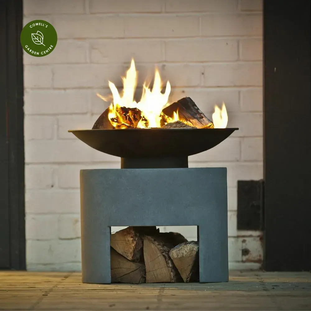Modern and minimalistic, with handy storage for keeping unlit logs, our firebowl and oval console creates an outdoor haven. Working hard to keep you warm whilst providing an attractive focal point, this frost-resistant and UV stable fire bowl helps you make the most of your great outdoors. Time to plan that garden party…