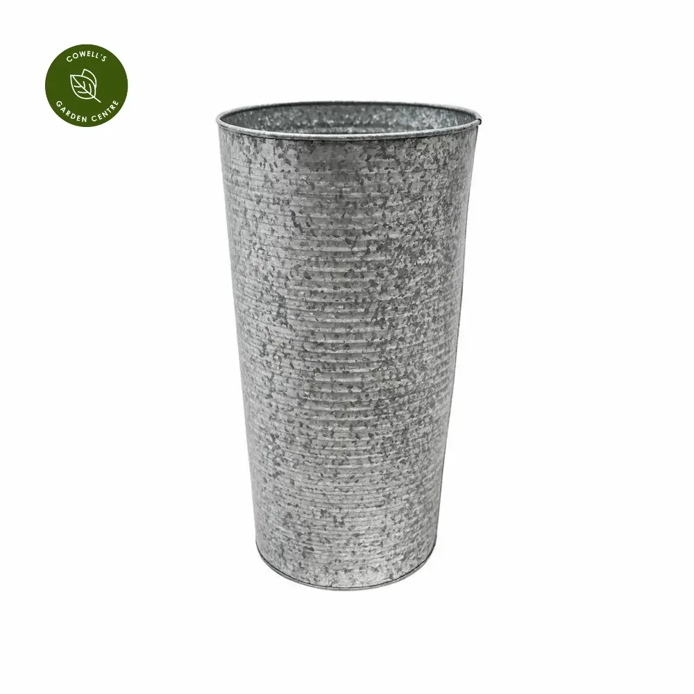 Understatedly charming, our ribbed galvanised vase elevates your blooms in more ways than one. Stable in sunlight and resistant to frost and rust, it features in-built drainage for easy plant management. The lightweight, vintage-style aesthetic of this vase brings a rustic feel to garden spaces, but looks just as alluring styled either side of your back door.