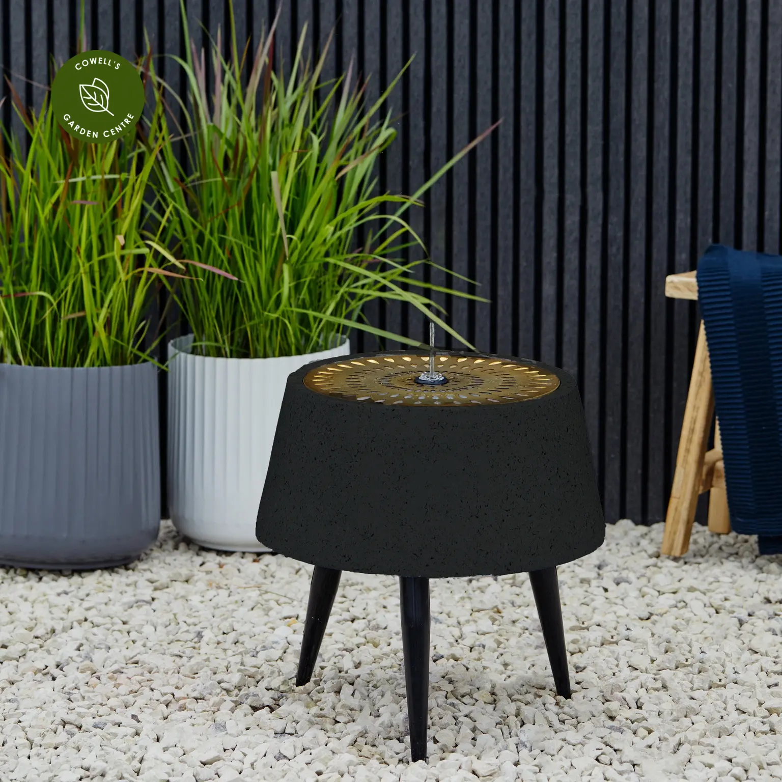 The Ivyline Solis water feature with black legs and light display is a stand-out feature piece when it comes to garden décor. Rust-resistant, protected from sun damage and made from premium quality materials, the Solis metal water fountain on black legs with lights is perfectly suited to outdoor life. The black legs lift the sleek water feature off the ground, creating an elegant silhouette and adding height to your garden. The Ivyline Solis water fountain makes the ideal focal point amongst lustrous foliage!