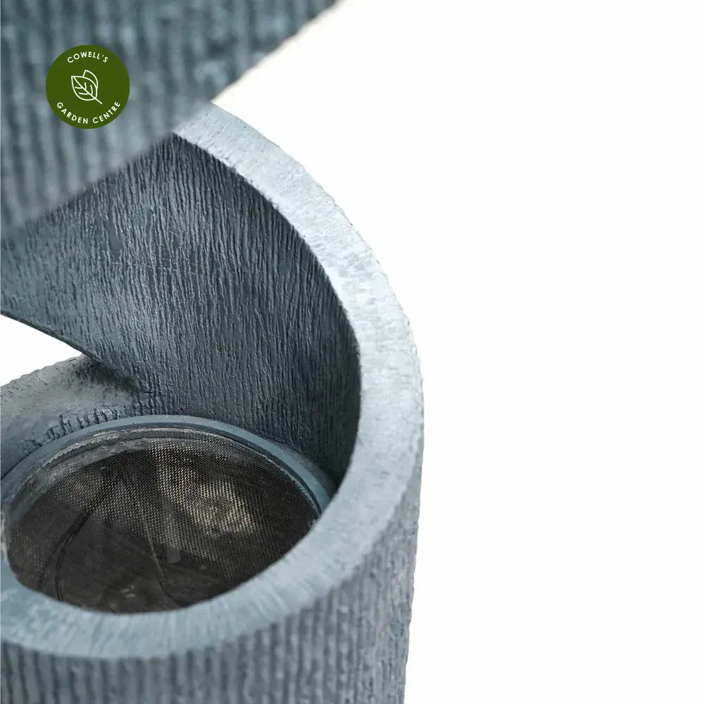 Visually striking, this outdoor spiral water feature showcases an ultra-modern design with a spiral shape that neatly wraps the showering water streams. Made from polyresin and available in a Cement, Granite or Sandstone finish, this lightweight, plug and play water fountain with a ridge finish also features LED lighting, which not only highlights its aesthetics but also perfectly brightens up your alfresco area.